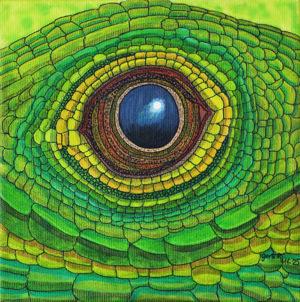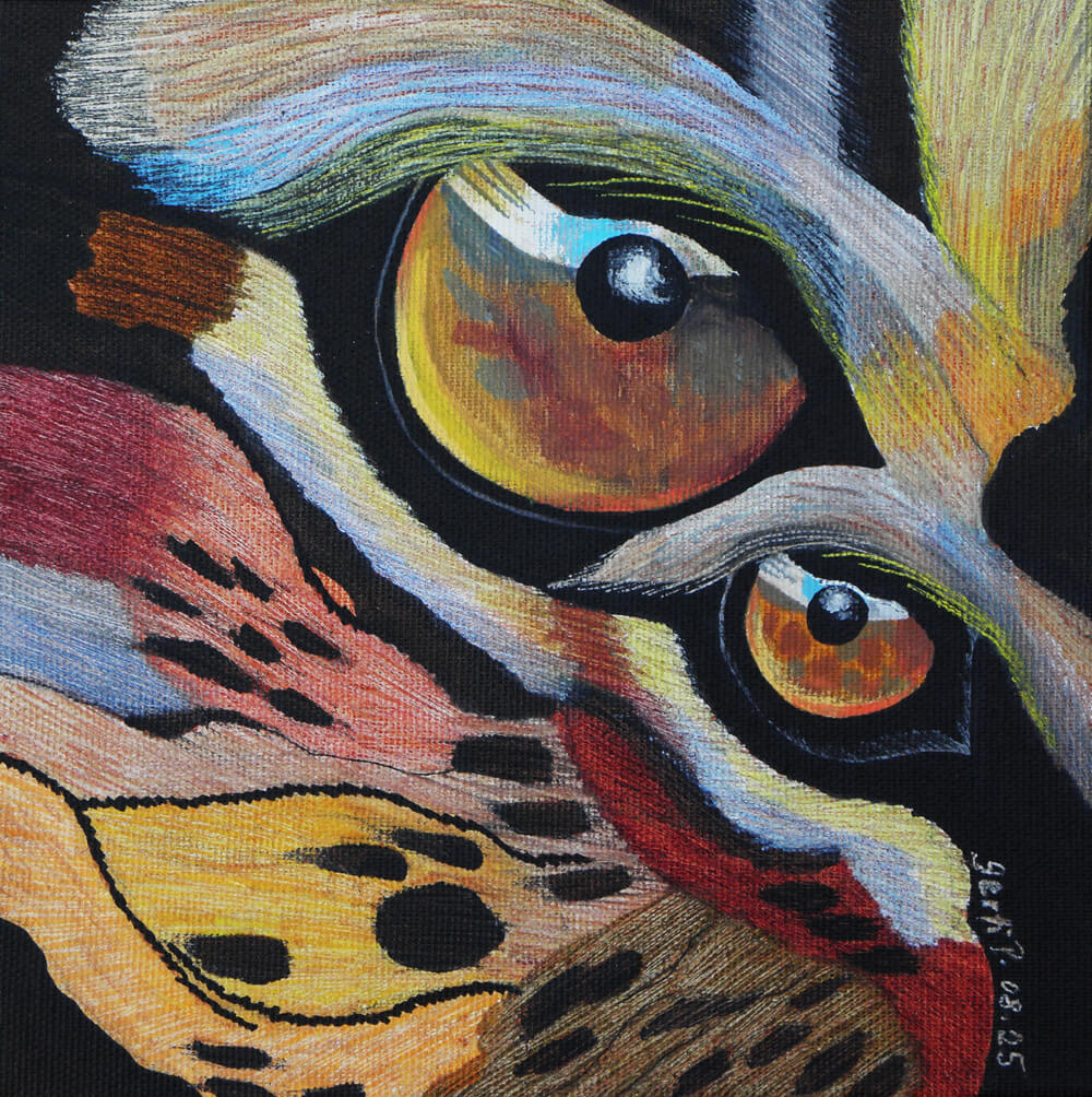 Original 2017 • 300,- € • 30 x 30 cm • Acryl-Tusche auf Leinwand, im ockerfarbenen Holzrahmen (Siena), matt, 2 cm breit