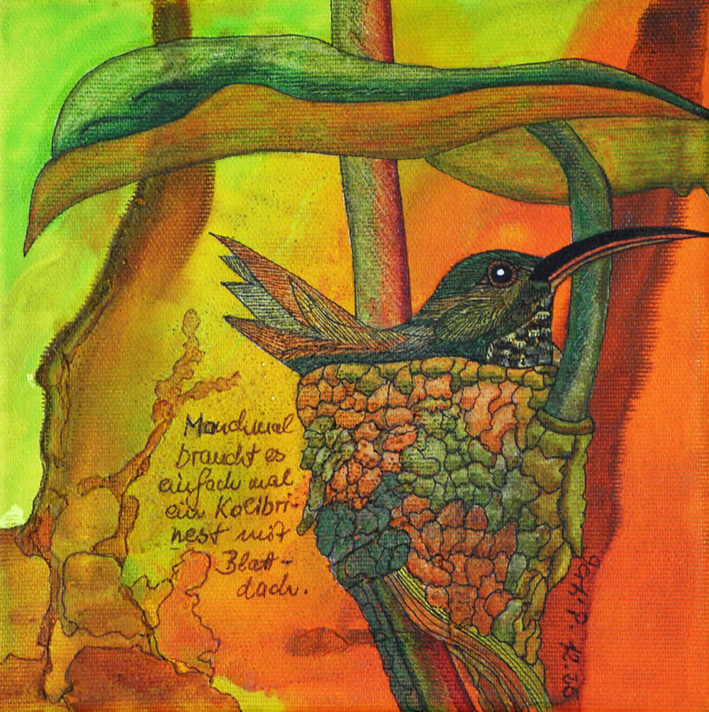 Original 2017 • 450,- € • 50 x 50 cm • Acryl-Tusche-Mischtechnik auf Leinwand, im dunkelgrünen Holzrahmen, matt, 2 cm breit