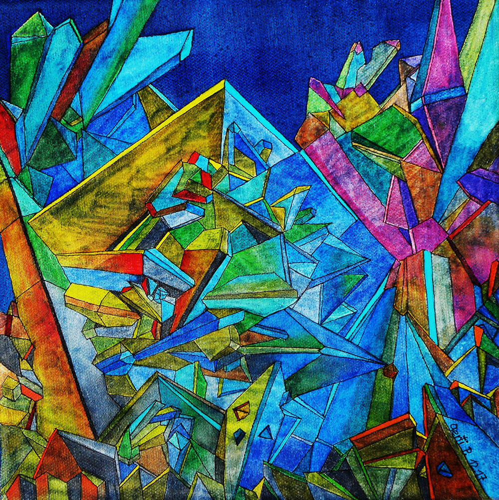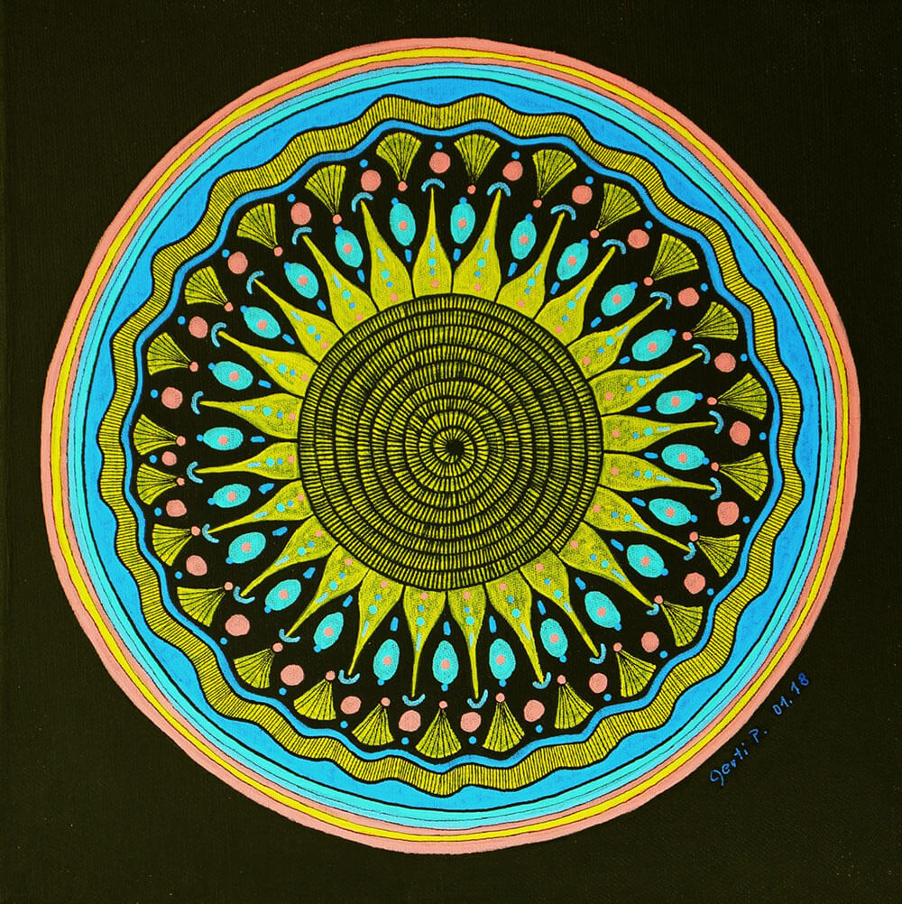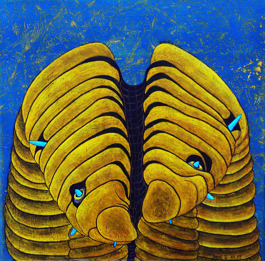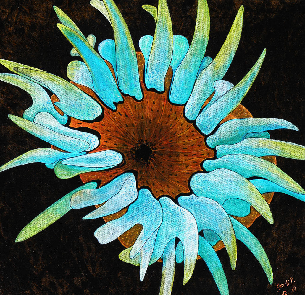 Original 2017 • 300,- € • 30 x 30 cm • Acryl-Tusche auf Leinwand, im türkisfarbenen Holzrahmen, matt, 2 cm breit