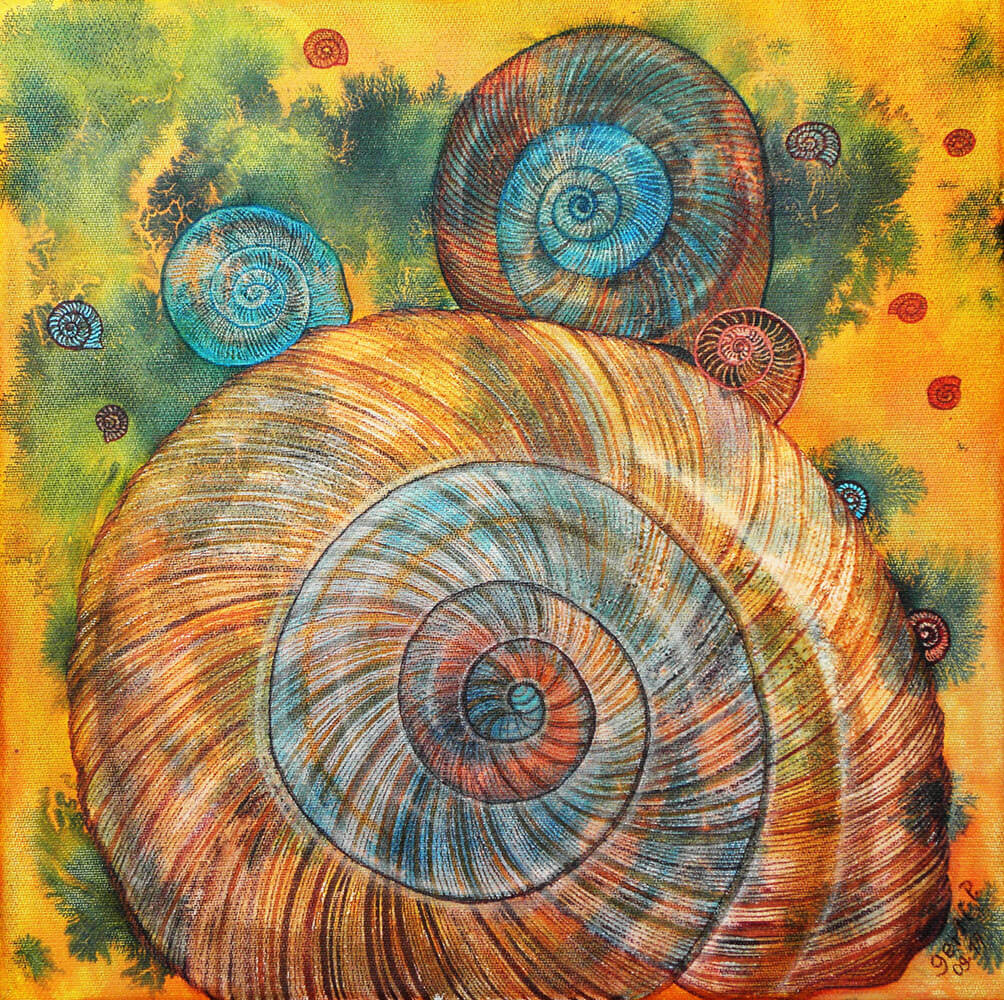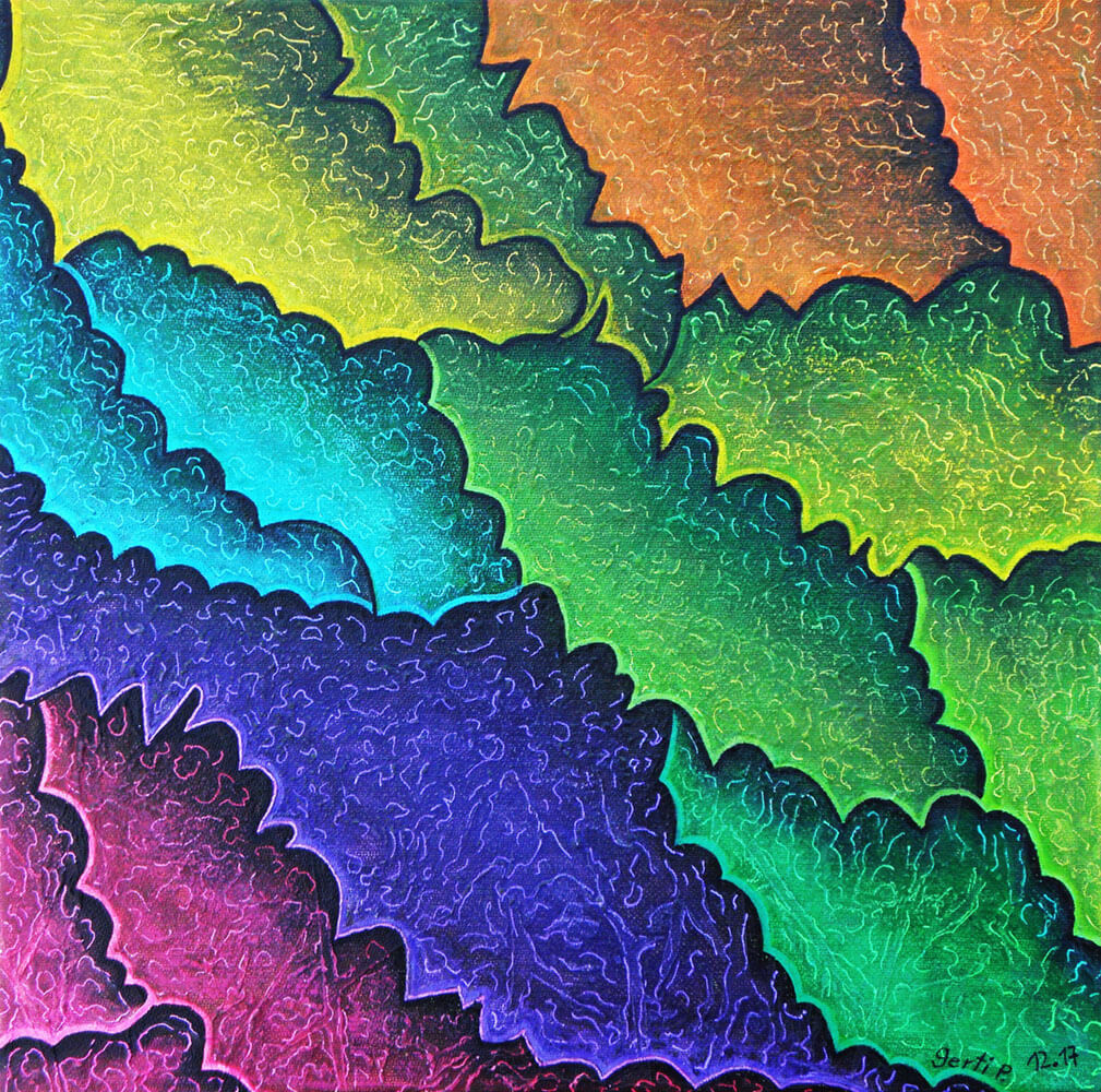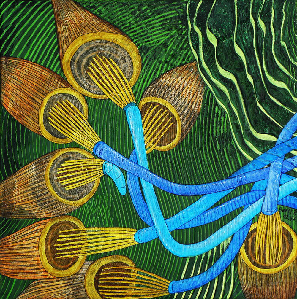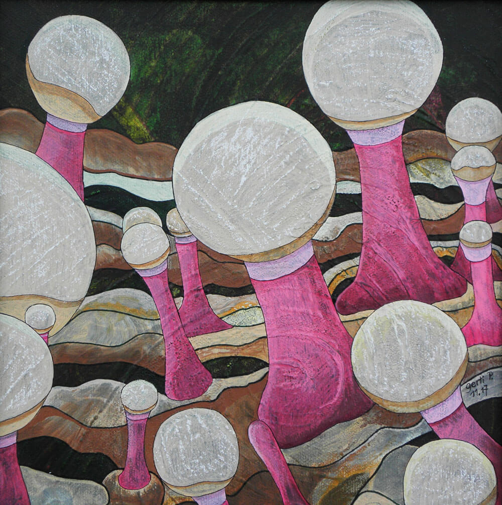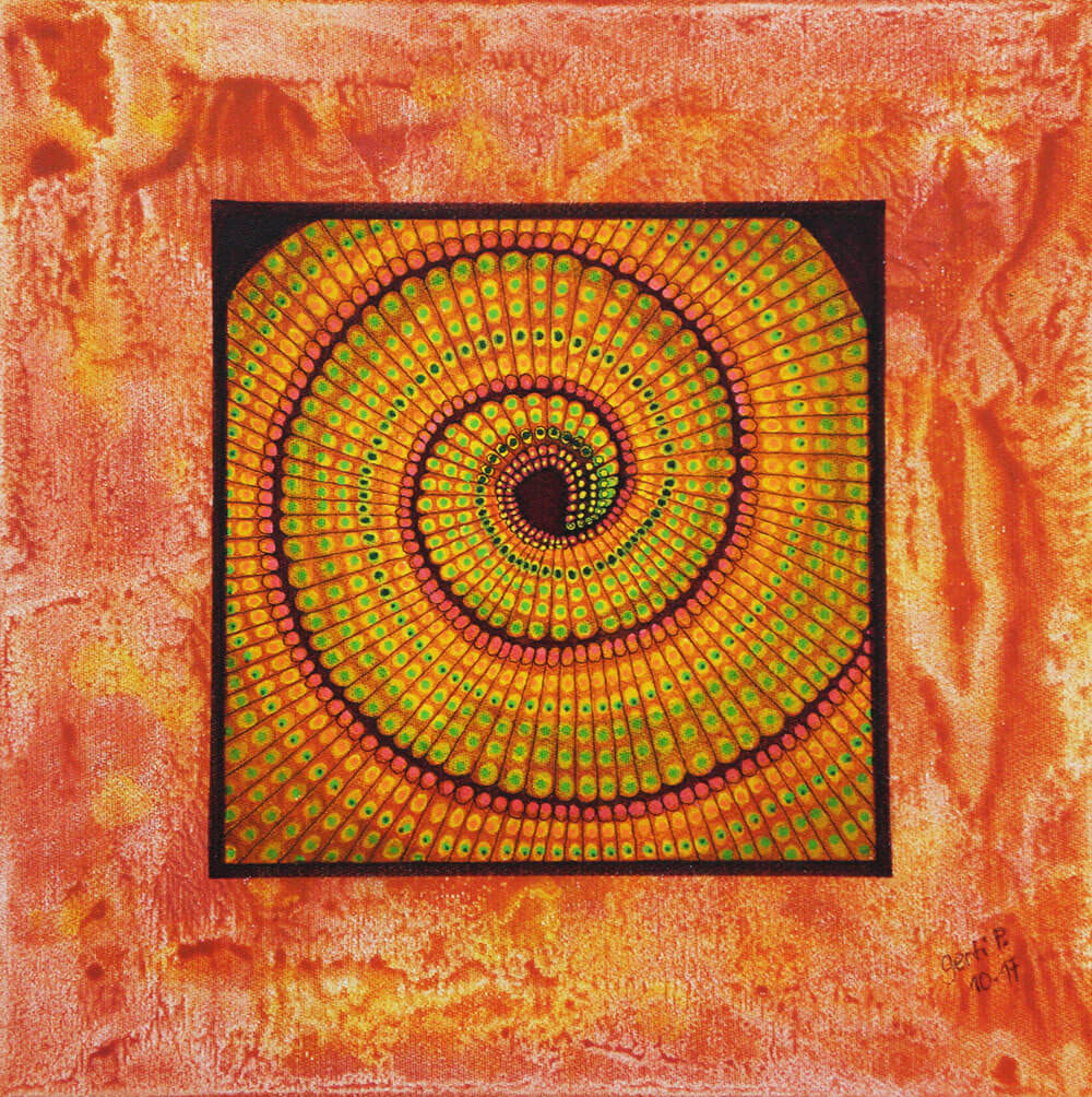 Original 2017 • 300,- € • 30 x 30 cm • Acryl-Tusche-Mischtechnik auf Leinwand, im olivfarbenen Holzrahmen, matt, 2 cm breit