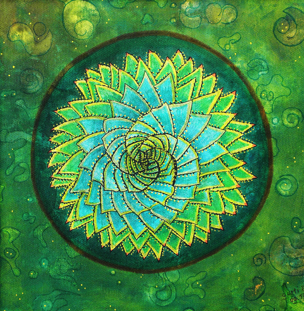 Original 2017 • 350,- € • 30 x 30 cm • Acryl-Tusche auf Leinwand, im brillantgrünen Holzrahmen, matt, 2 cm breit