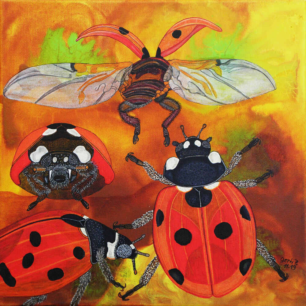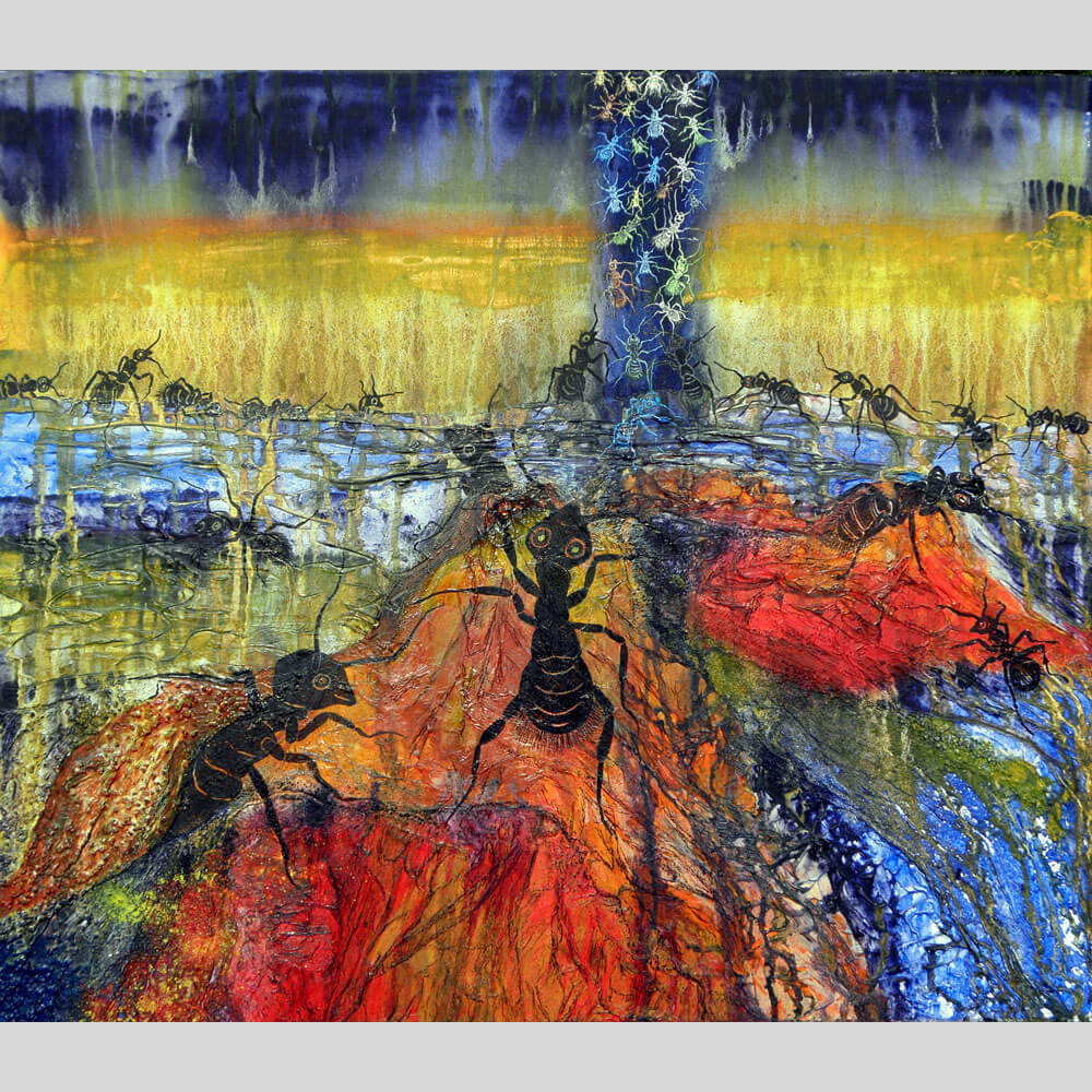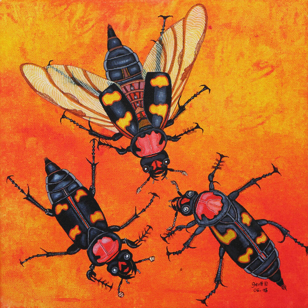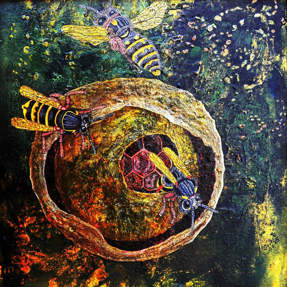 Original 2019 • 600,- € • 50 x 50 cm • Acryl-Tusche-Mischtechnik auf Leinwand, im ockerfarbenen Holzrahmen, matt, 2 cm breit
