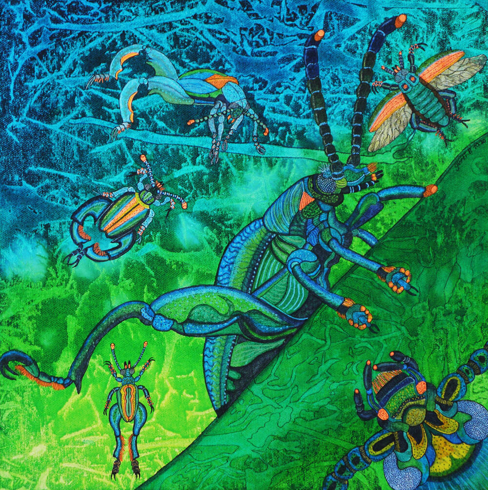 Original 2018 • 400,- € • 40 x 40 cm • Acryl-Tusche auf Leinwand, im dunkelgrünen Holzrahmen, matt, 2 cm breit