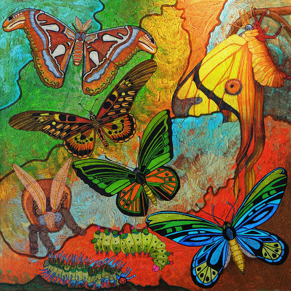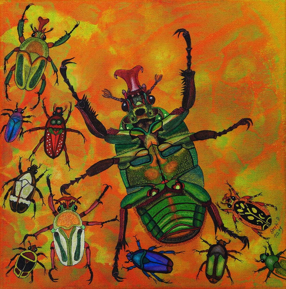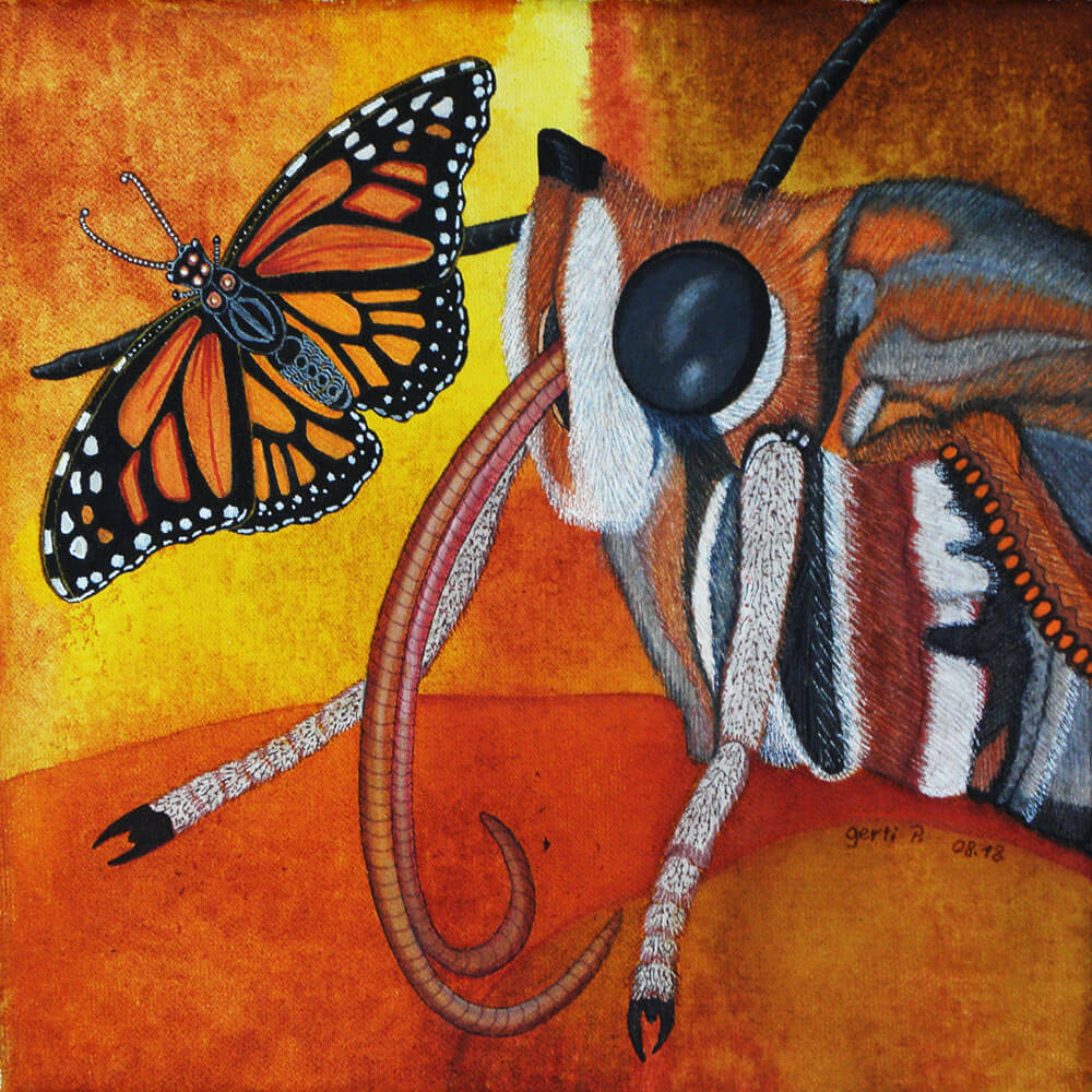 Original 2019 • 500,- € • 40 x 40 cm • Acryl-Tusche-Mischtechnik auf Leinwand, im rotbraunen Holzrahmen, matt, 2 cm breit