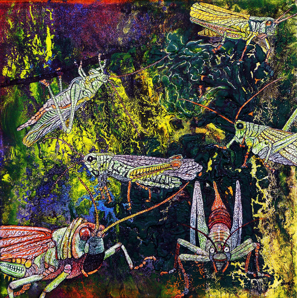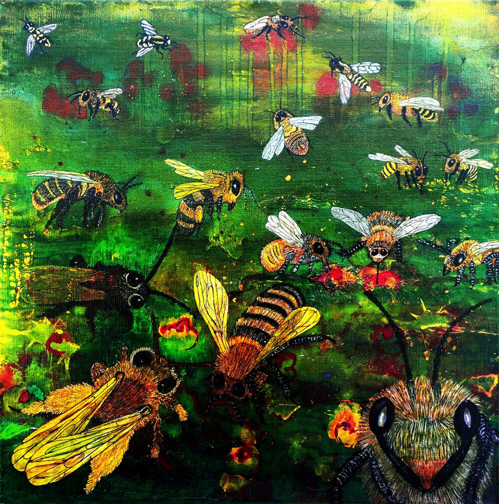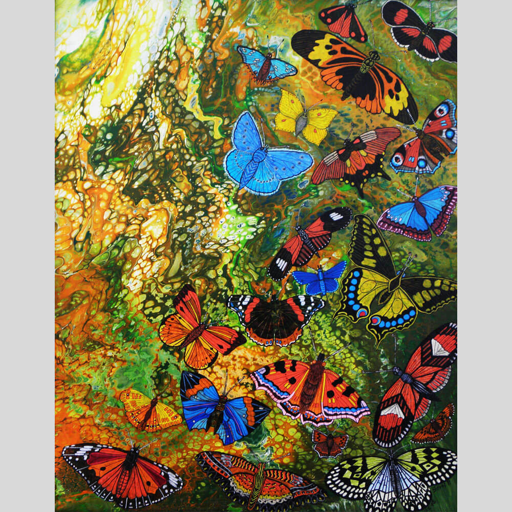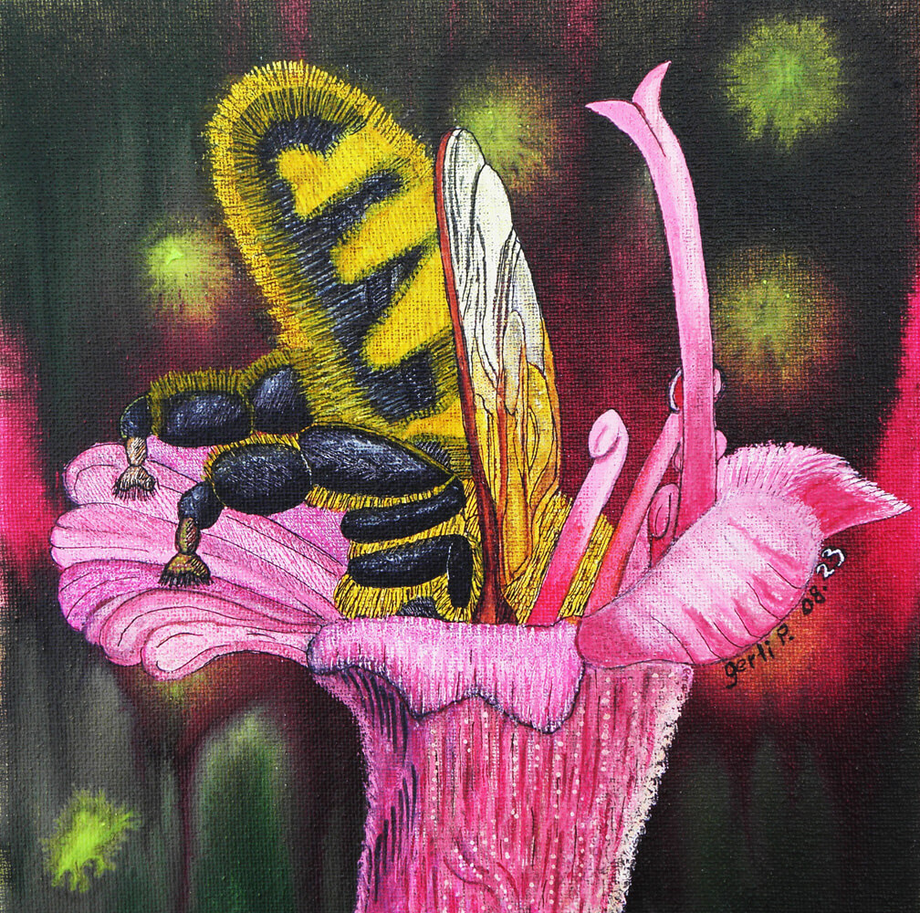 Original 2019 • 400,- € • 40 x 40 cm • Acryl-Tusche auf Leinwand, im dunkelgrünen Holzrahmen, matt, 2 cm breit