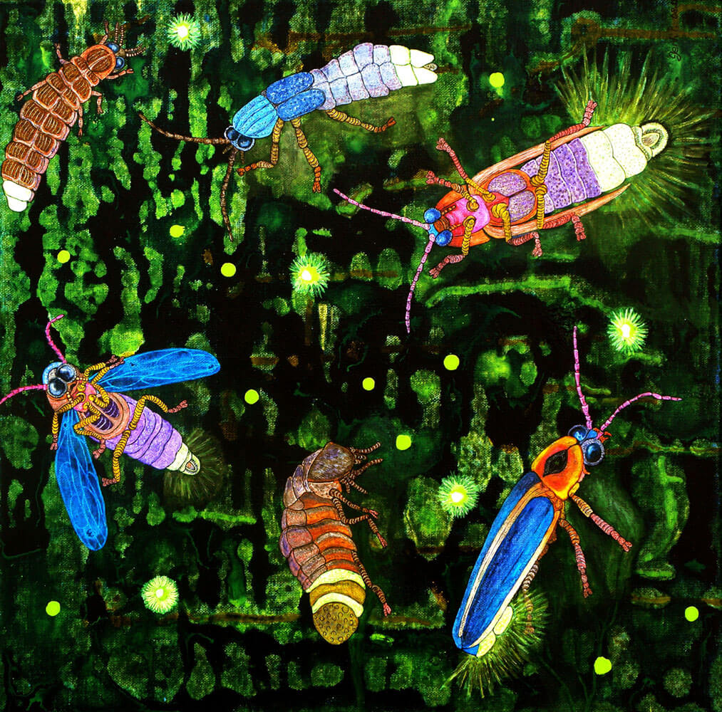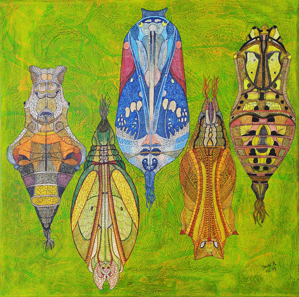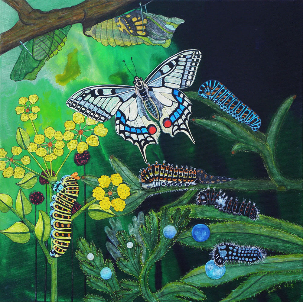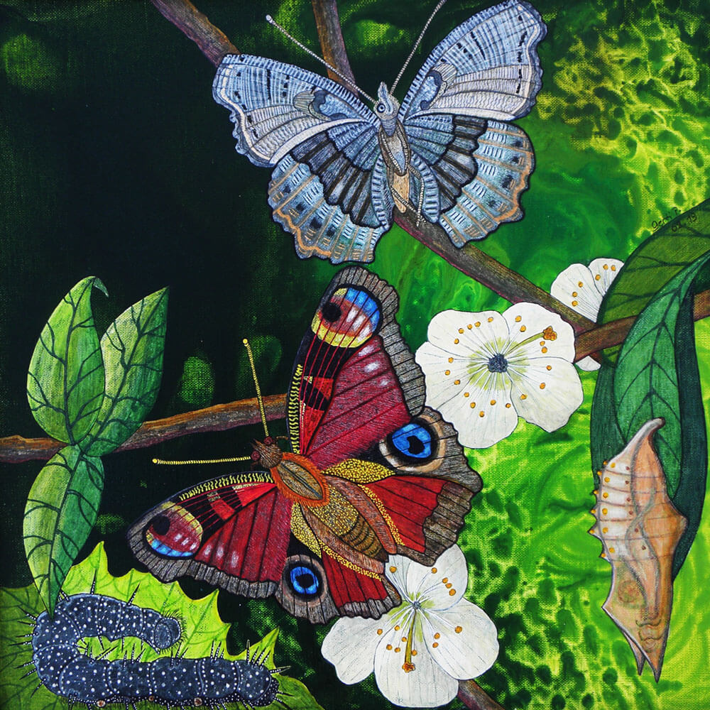 Original 2019 • 400,- € • 40 x 40 cm • Acryl-Tusche auf Leinwand, im dunkelgrünen Holzrahmen, matt, 2 cm breit