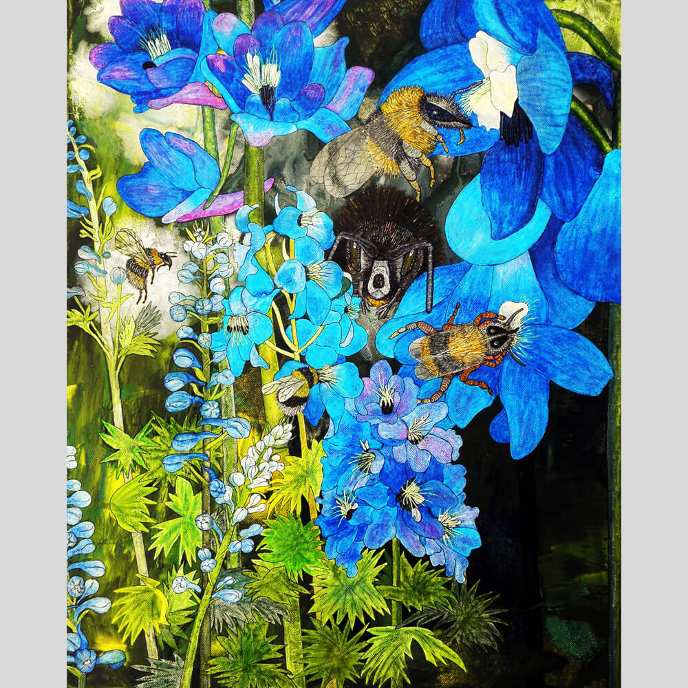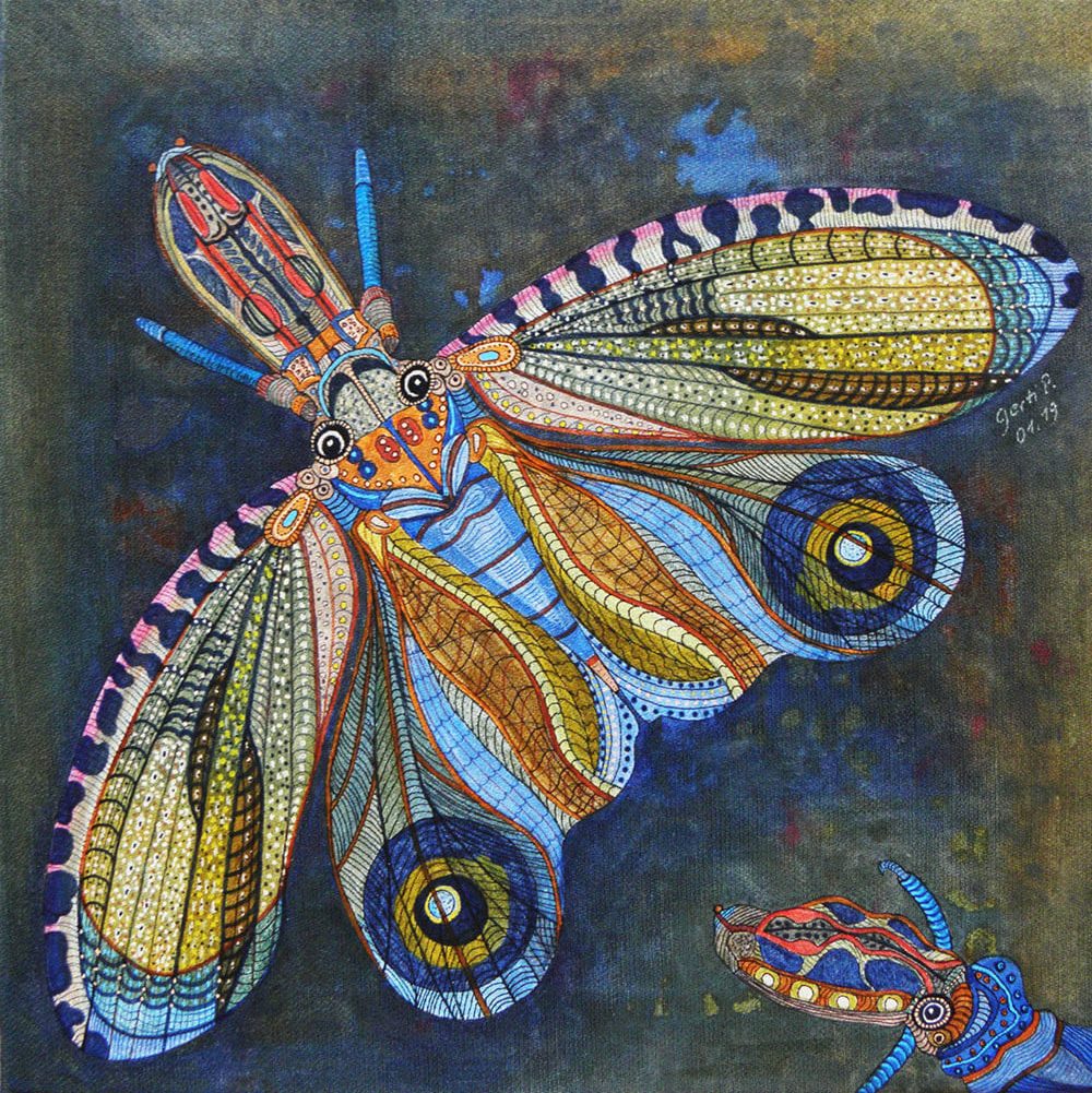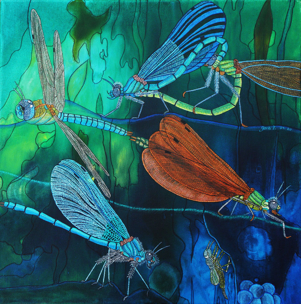 Original 2018 • 500,- € • 50 x 40 cm • Acryl-Tusche-Mischtechnik auf Leinwand, im taubenblauen Holzrahmen, matt, 2 cm breit