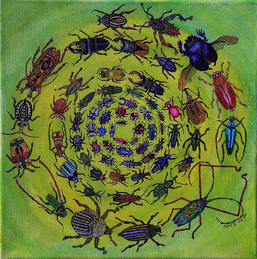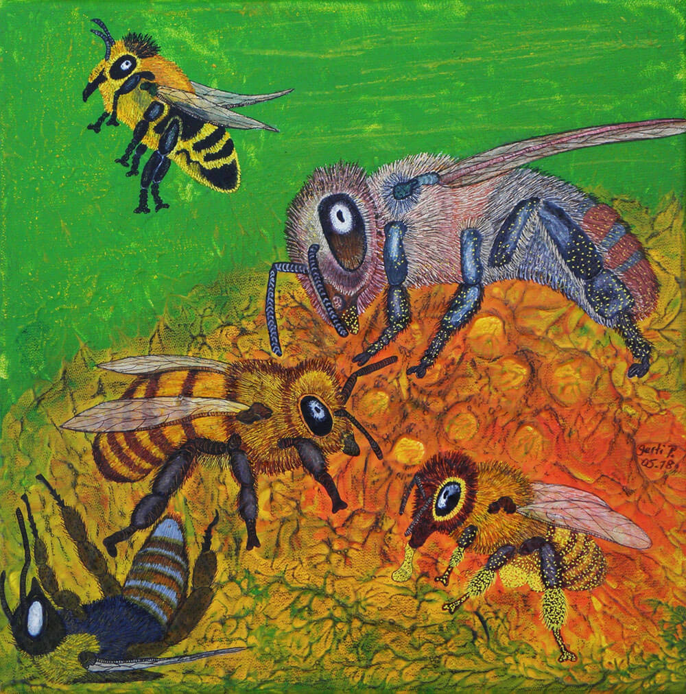 Original 2015 • 300,- € • 30 x 30 cm • Acryl-Tusche-Mischtechnik auf Leinwand, im goldgelben Holzrahmen, matt, 2 cm breit
