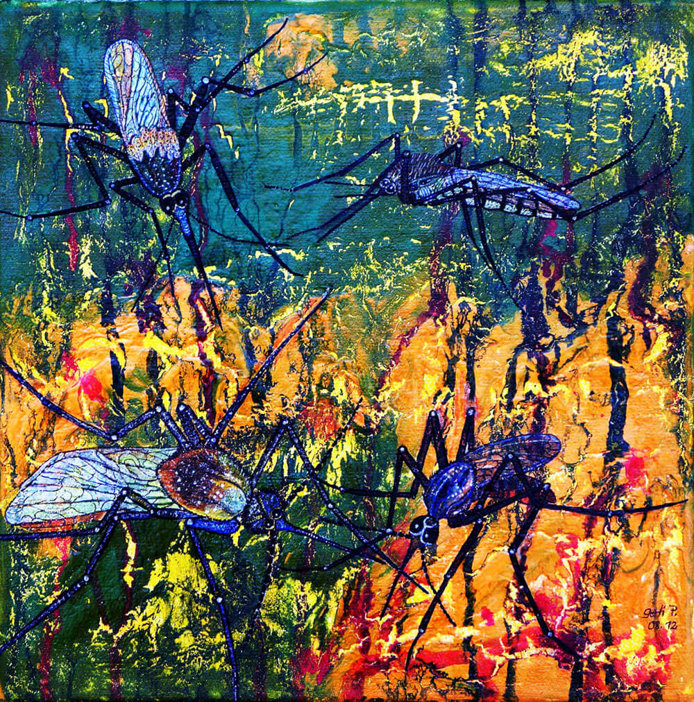 Original 2012 • 300,- € • 30 x 30 cm • Acryl-Tusche-Mischtechnik auf Leinwand, im goldgelben Holzrahmen, matt, 2 cm breit