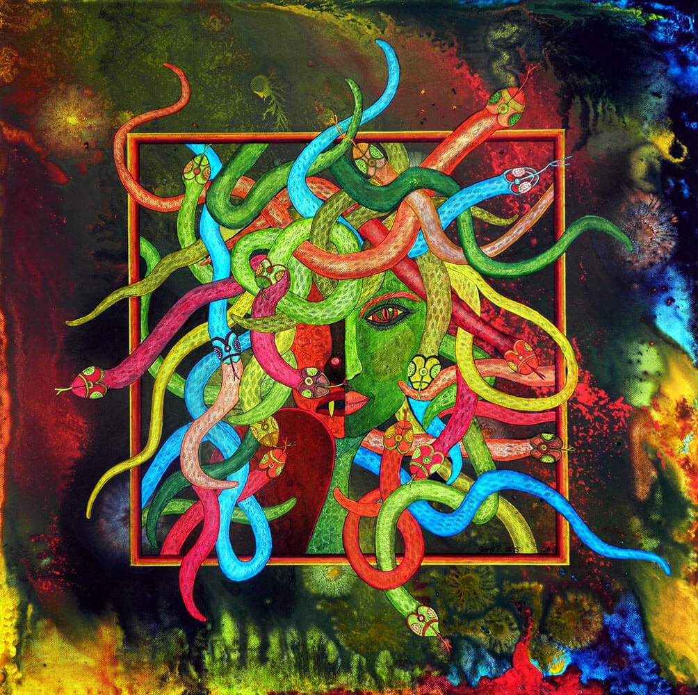Original 2015 • 400,- € • 60 x 50 cm • Acryl-Tusche-Mischtechnik auf Leinwand, im scharlachroten Holzrahmen, matt, 2 cm breit