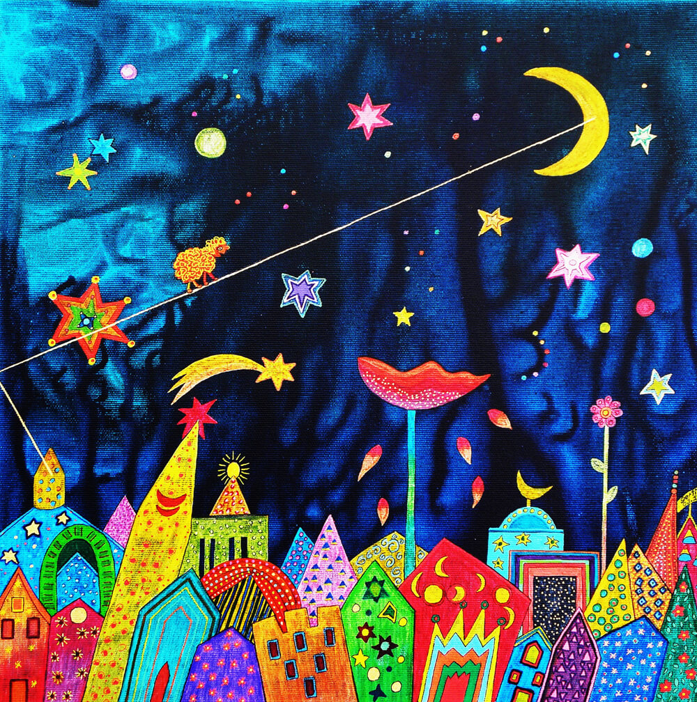 Original 2014 • 500,- € • 70 x 50 cm • Acryl-Tusche-Mischtechnik auf Leinwand, im dunkelblauen Holzrahmen, matt, 2 cm breit