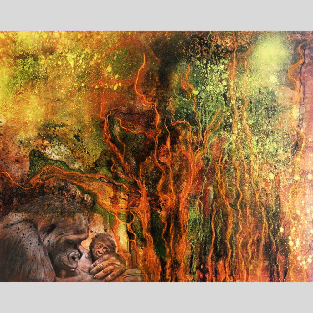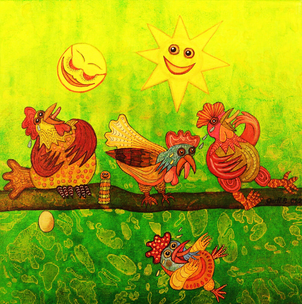 Original 2012 • 450,- € • 50 x 60 cm • Acryl-Tusche-Mischtechnik auf Hartfaserplatte, im schmalen Silberrahmen 0,5 cm, ohne Glas