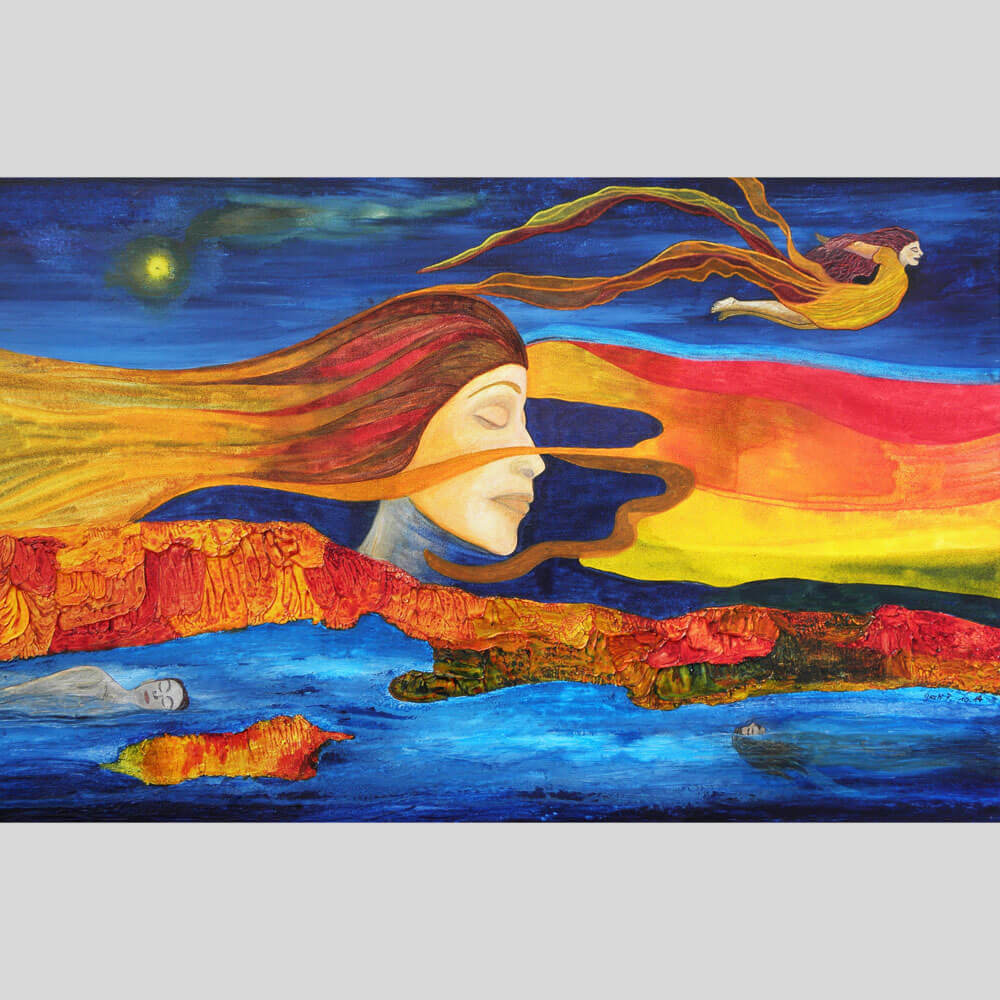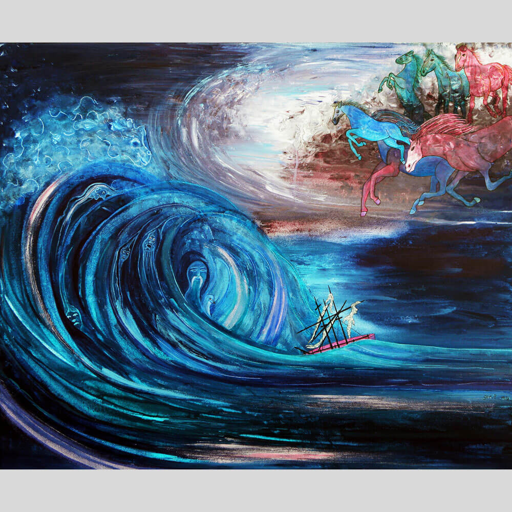 Original 2011 • 600,- € • 70 x 50 cm • Acryl-Tusche-Mischtechnik auf Leinwand, im dunkelblauen Holzrahmen, matt, 2 cm breit