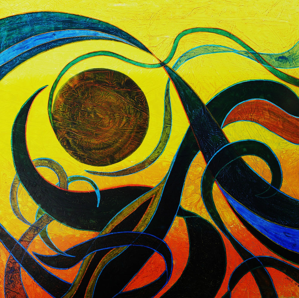 Original 2010 • 400,- € • 50 x 50 cm • Acryl-Tusche-Mischtechnik auf Leinwand, im orangefarbenen Holzrahmen, matt, 2 cm breit