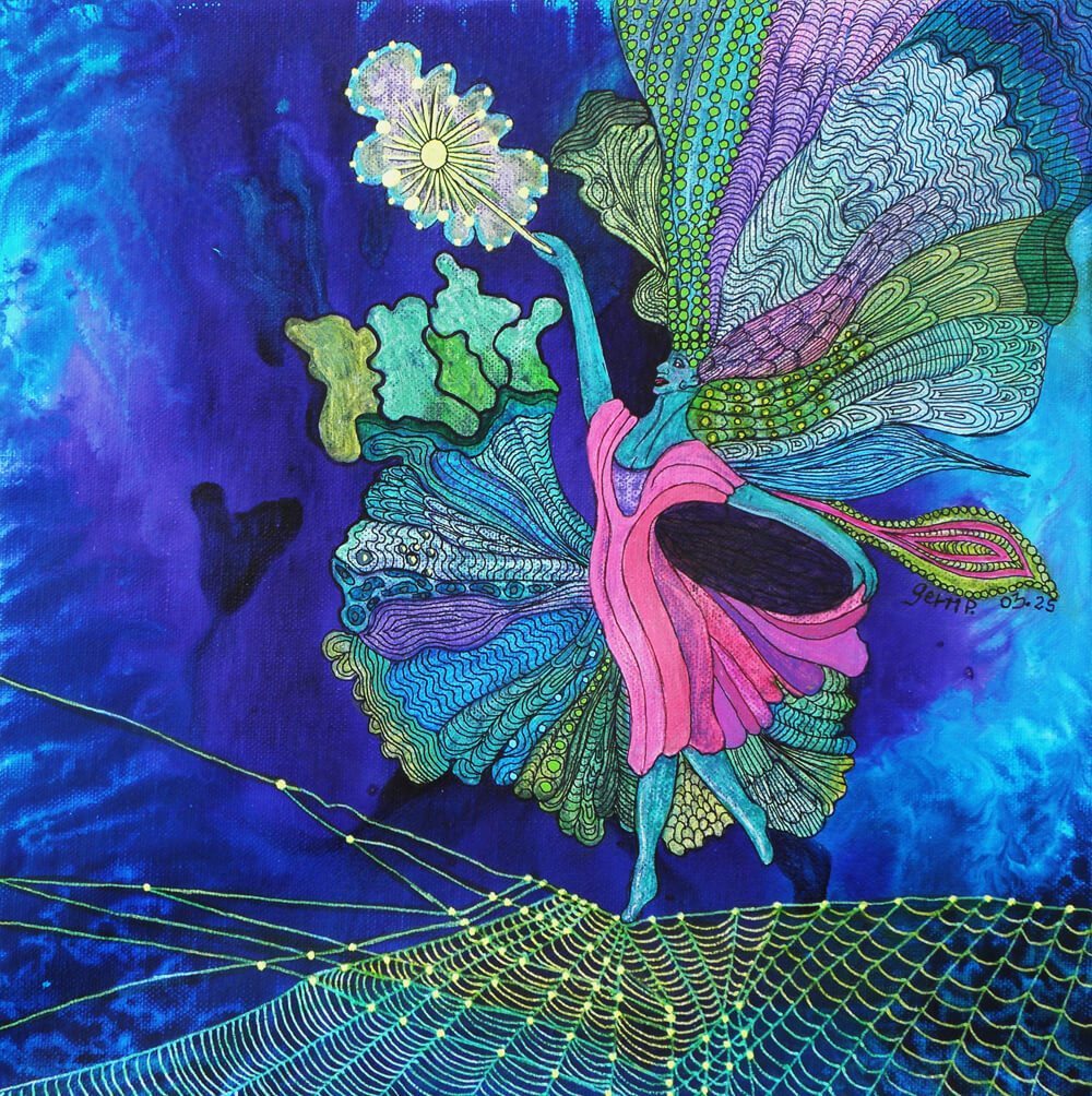 Original 2013 • 450,- € • 50 x 50 cm • Acryl-Tusche-Mischtechnik auf Leinwand, im dunkelblauen Holzrahmen, matt, 2 cm breit