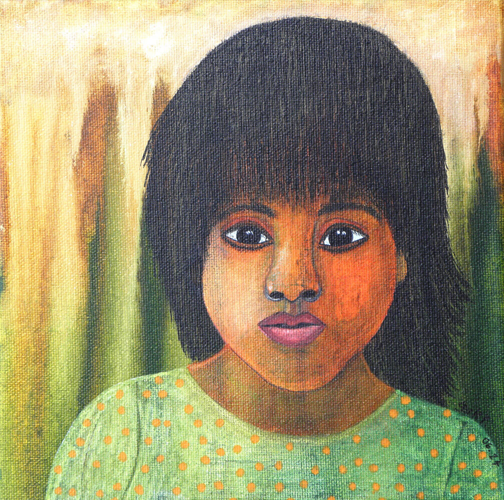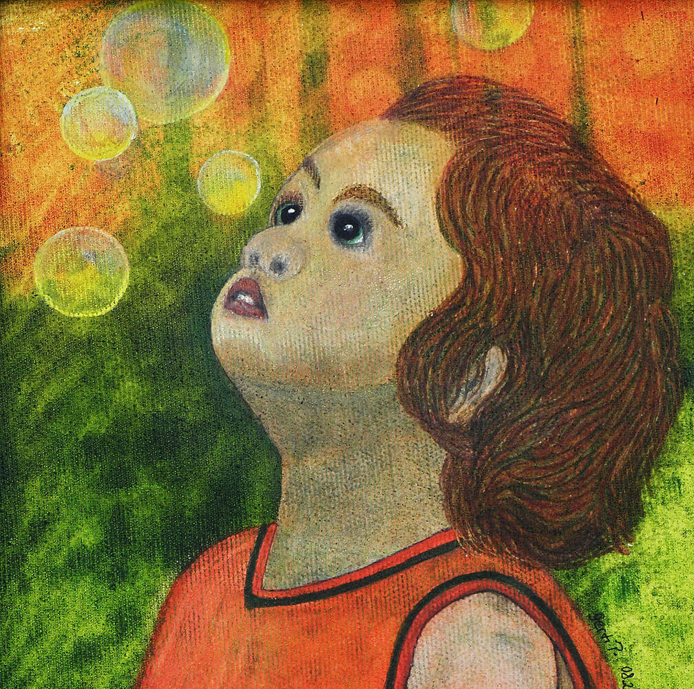 Original 2024 • 200,- € • 20 x 20 cm • Tusche auf Leinwand, im olivgrünen Holzrahmen, matt, 2 cm breit