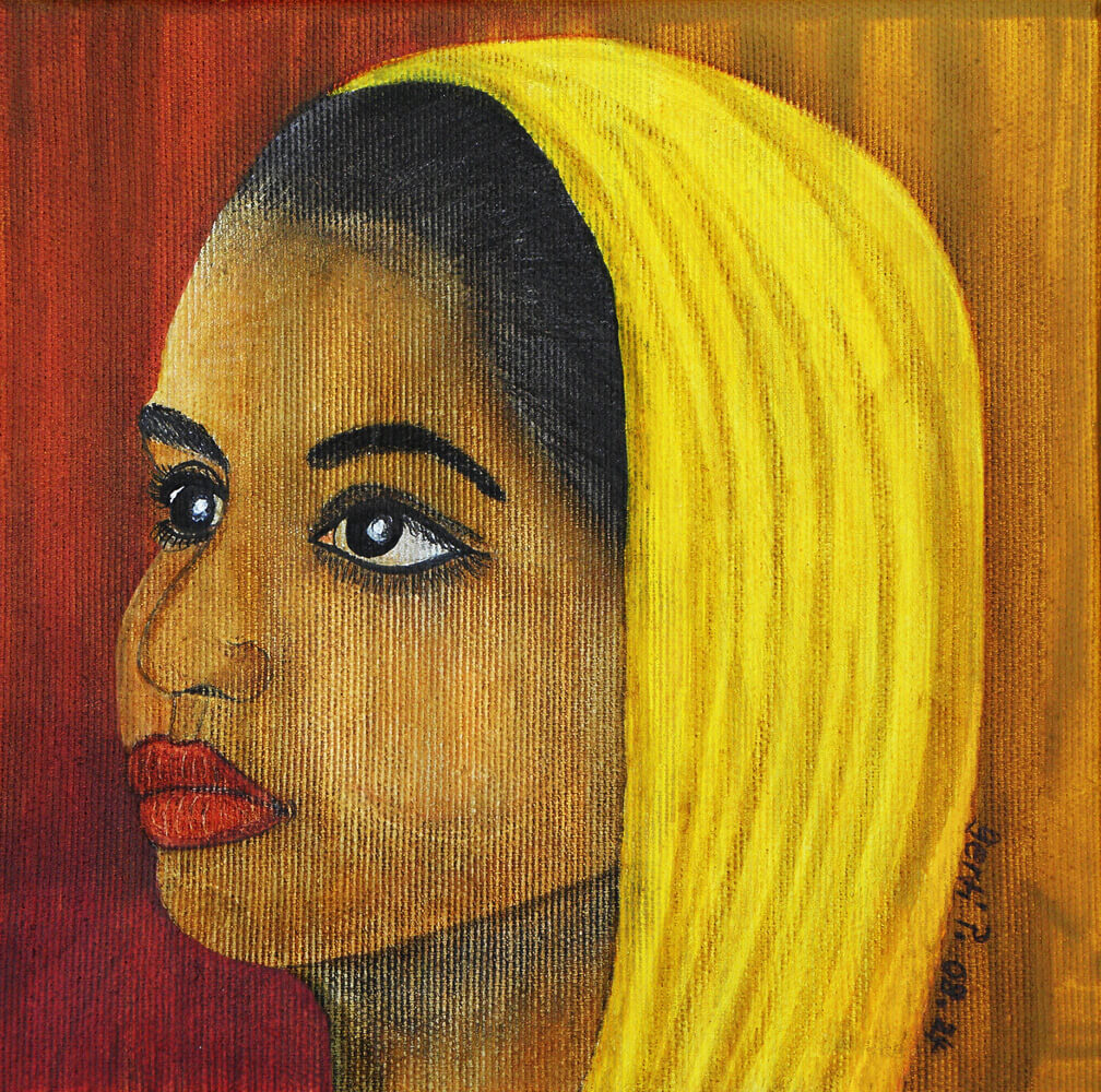 Original 2024 • 200,- € • 20 x 20 cm • Tusche auf Leinwand, im ockergelben Holzrahmen, matt, 2 cm breit