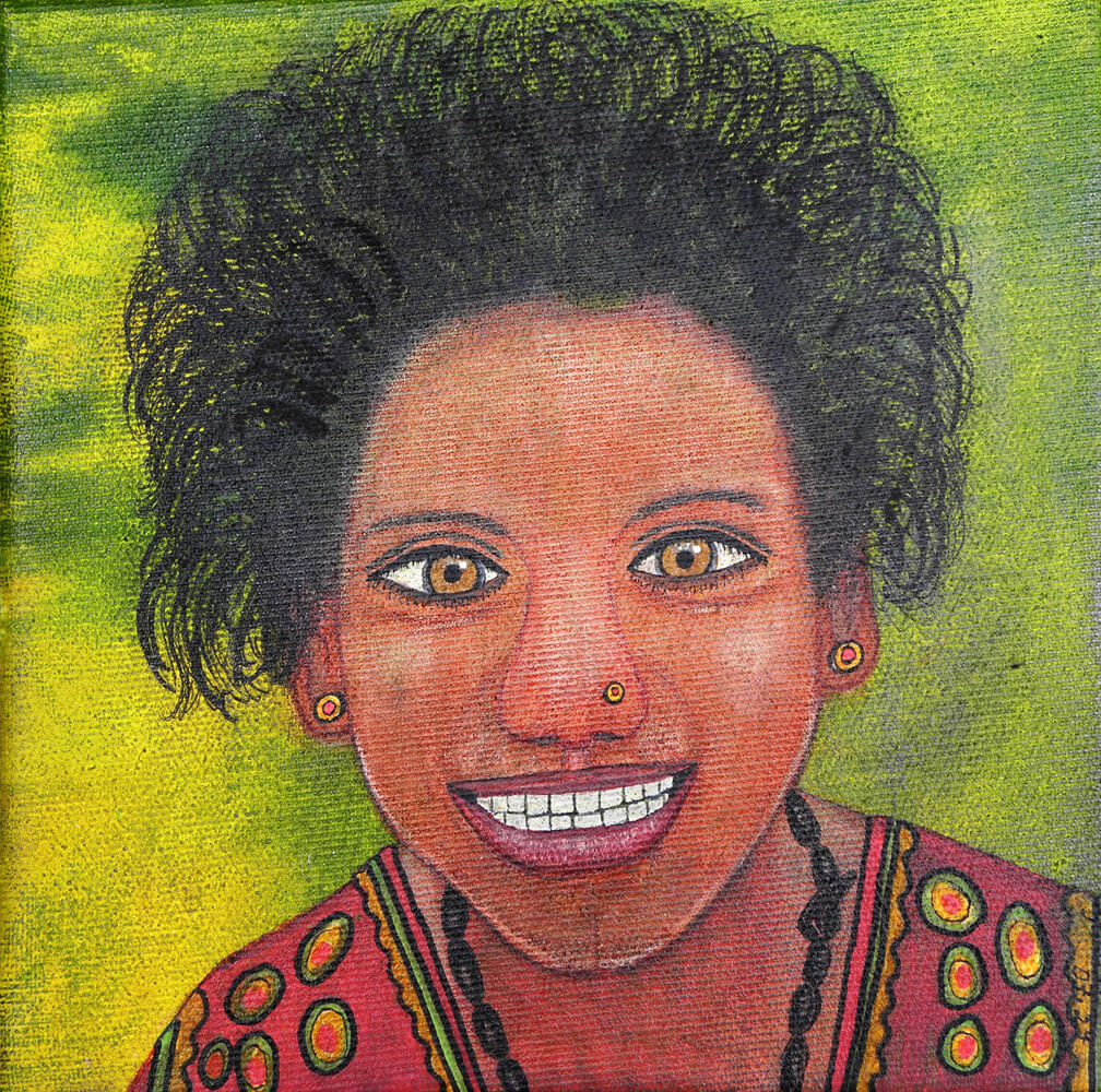 Original 2024 • 200,- € • 20 x 20 cm • Tusche auf Leinwand, im hauttonfarbenen Holzrahmen, matt, 2 cm breit