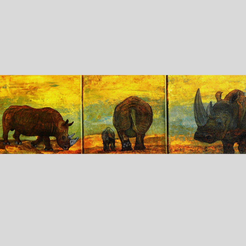Original 2015 • 800,- € • 90 x 30 cm • Triptychon, Acryl-Tusche auf Leinwand, im goldockerfarbenen Holzrahmen, matt, 2 cm breit