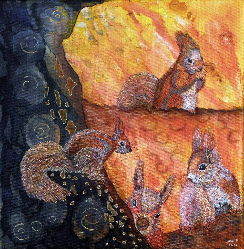 Die flinken, kleinen Eichkätzchen