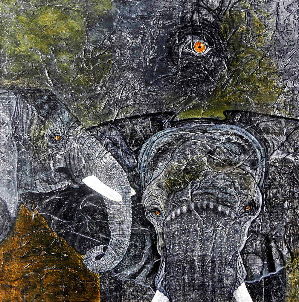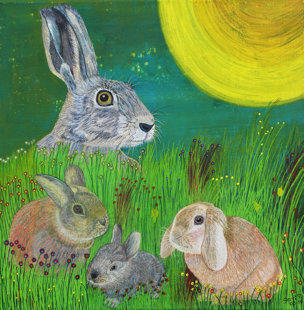 Original 2014 • 500,- € • 50 x 50 cm • Acryl-Tusche-Mischtechnik auf Leinwand, im olivgrünen Holzrahmen, matt, 2 cm breit