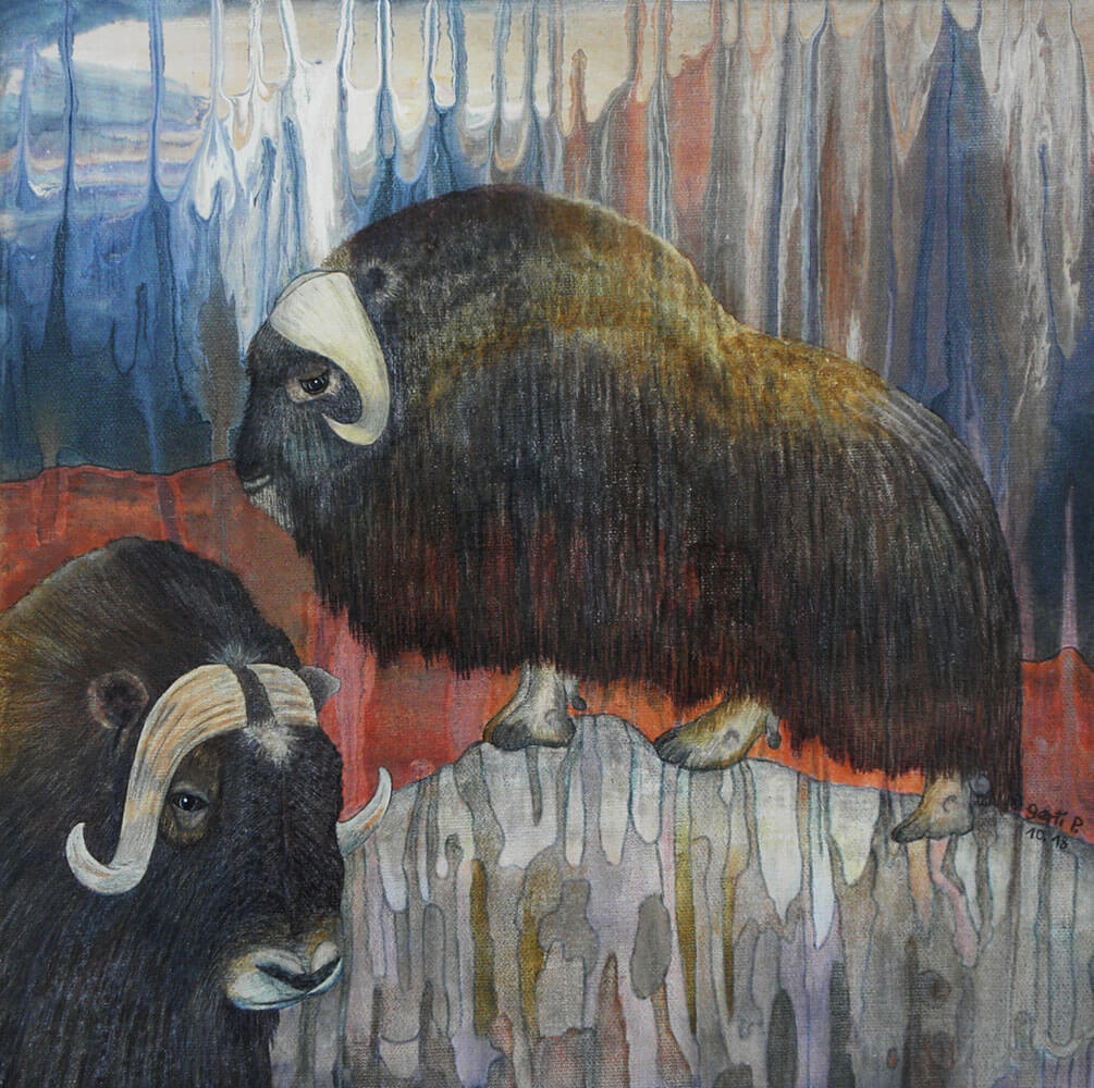 Original 2017 • 400,- € • 50 x 40 cm • Acryl-Tusche auf Leinwand, im ockerfarbenen Holzrahmen (Siena), matt, 2 cm breit